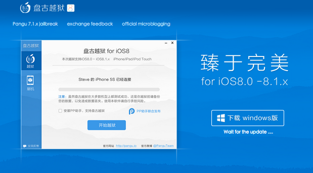 Download pangu8 1.2.1 jailbreak iOS 8.1 (Windows)