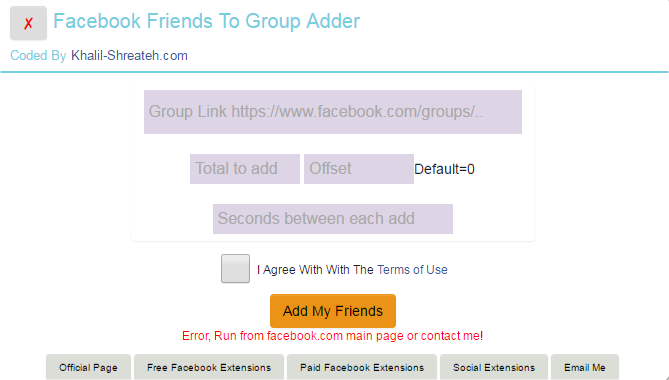 - Total to add : How many friends you want to add at this time, this feature allows not being blocked by Facebook, Facebook usually blocked users if they added 500+ at short time.