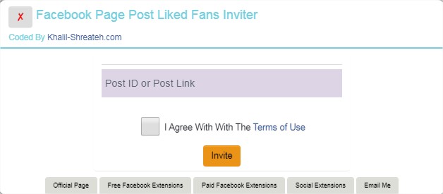 This is the free version, which allows you to chose one post link per use, you can order a premium version which allows you to loop all latest your page posts and send invites, and also free of terms of use. contact me ;)