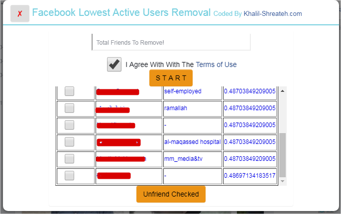 - Finaly hit the 'Unfriend Checked' button to delete them