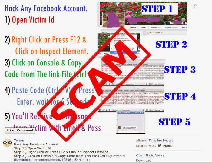 Recently every one of you saw a video or image on facebook tells you how to hack your friend account just by copy and paste a code in inspect element, or to change facebook theme , however the code also considered as a scam attack .