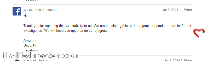 Facebook security reply after POC